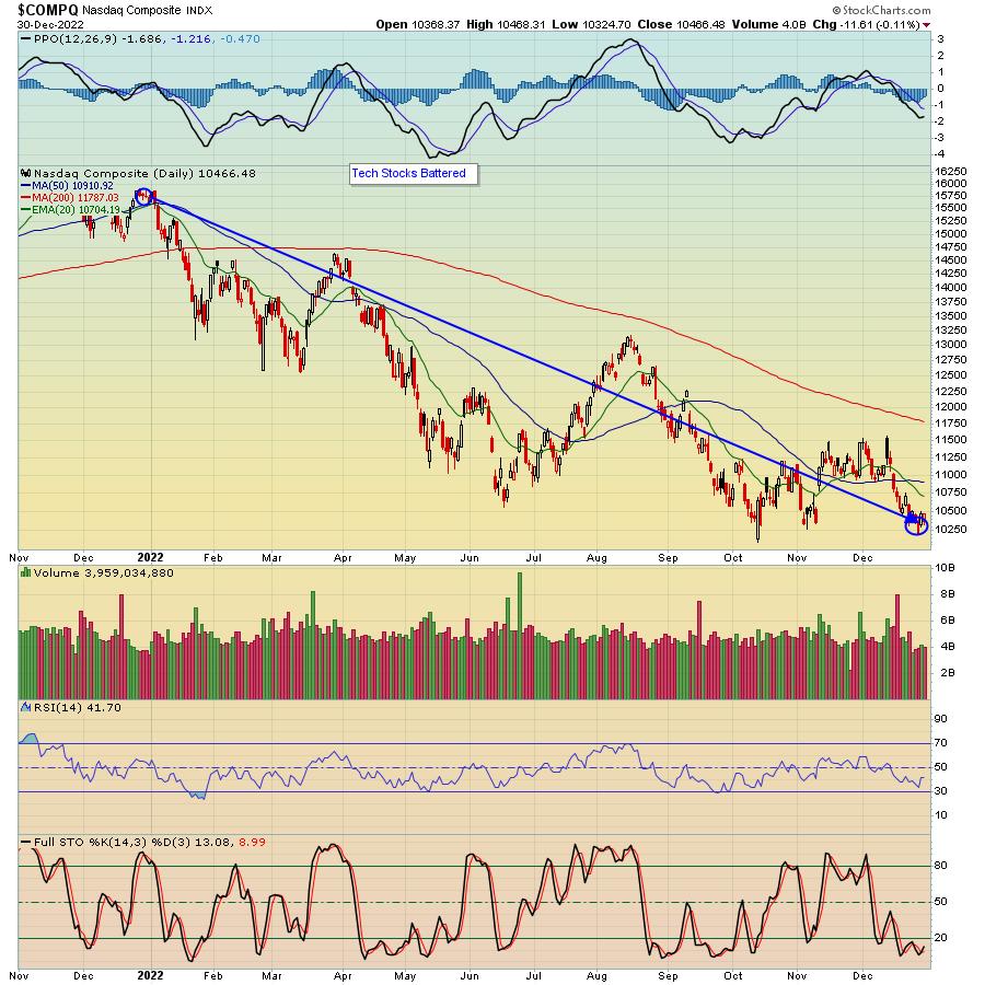 2022 has come to an end with a collective "Thank Goodness!" There's just no sugarcoating it; 2022 was a brutal year for those who were long stocks. This was particularly true for those who stuck with technology stocks, with the tech-heavy NASDAQ falling 33% for the year.