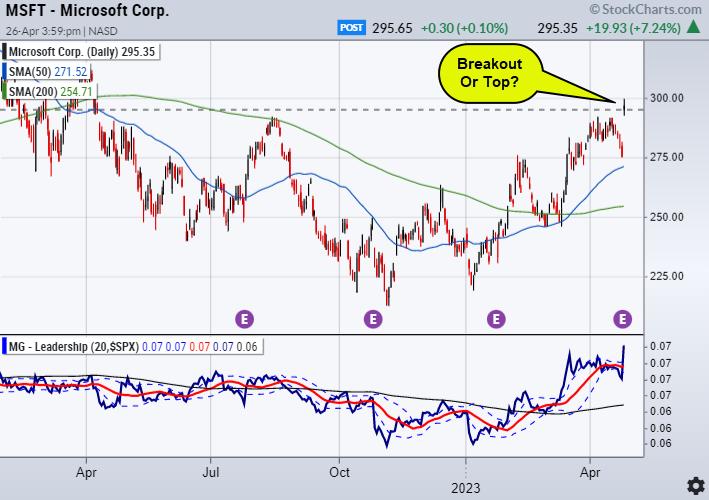 MSFT is a good example. Breakout or a head fake top? It depends on which way it goes next! Follow the range break.