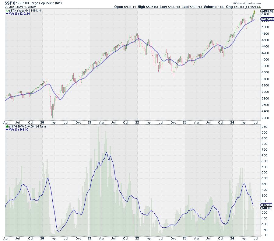One of the first charts in my chart list is a chart of the S&P 500 with the new 52-week highs.