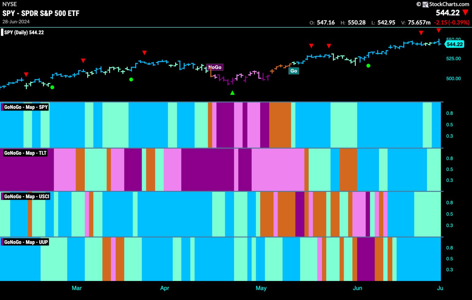 $SPY Remains in "Go" Trend but Struggles with New Highs