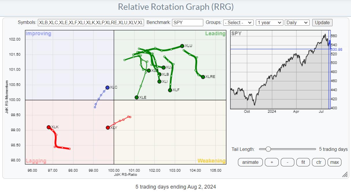 The RRG at the top is a daily RRG, as recent price action has significantly impacted near-term rotations.